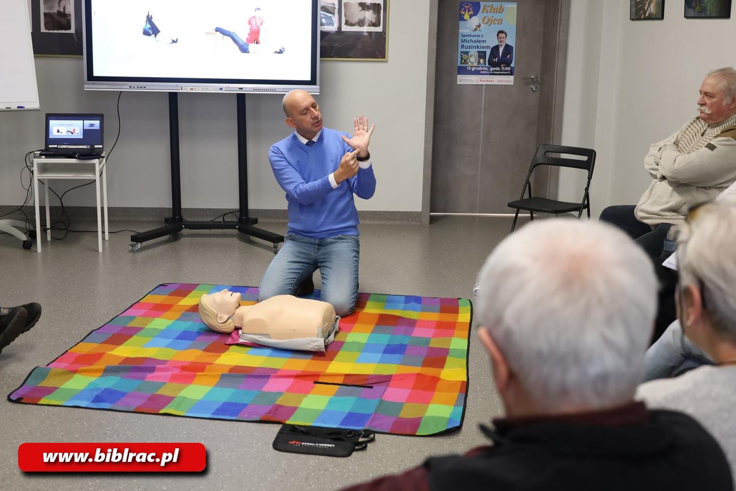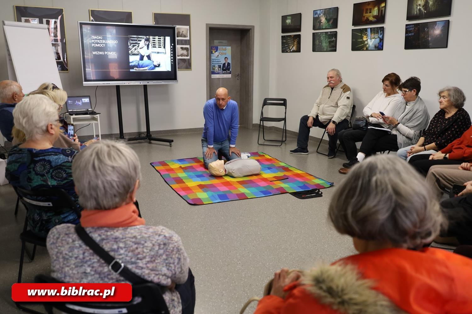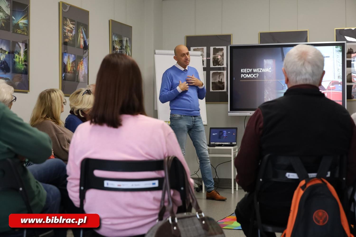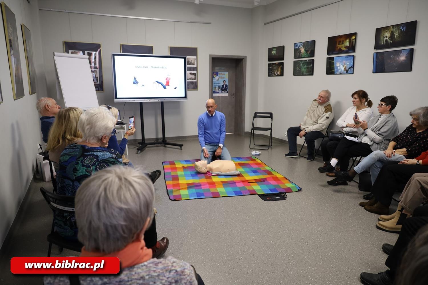 W raciborskiej bibliotece odbyło się spotkanie edukacyjne dla seniorów poświęcone podstawom udzielania pierwszej pomocy. Zajęcia miały formę wykładu połączonego z elementami praktycznymi, a poprowadził je Michał Rupik – dyrektor Wojewódzkiego Szpitala Chorób Płuc im. dr. Alojzego Pawelca w Wodzisławiu Śląskim, Wojewódzki Koordynator Ratownictwa Medycznego i ratownik medyczny z wieloletnim doświadczeniem.