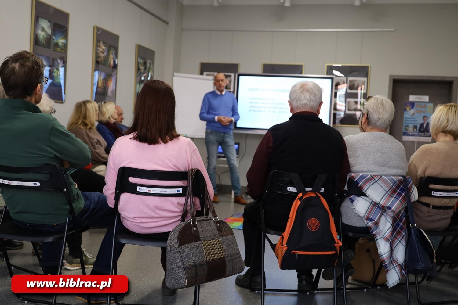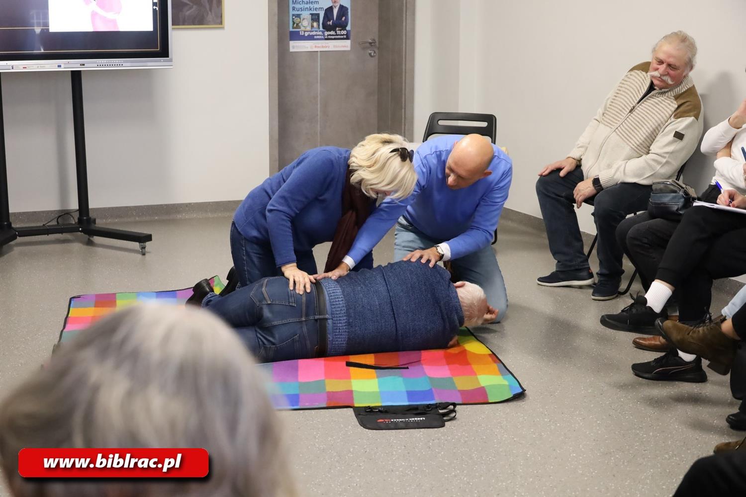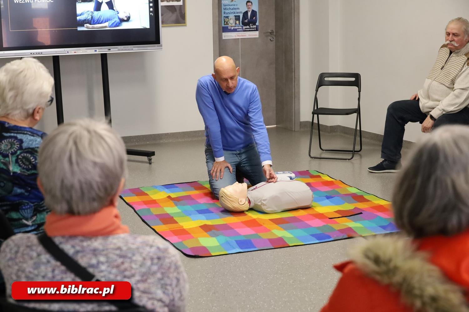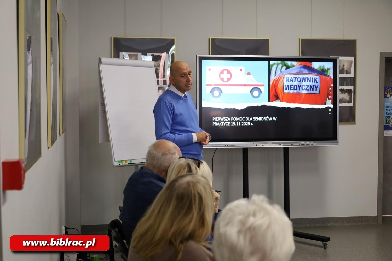 W raciborskiej bibliotece odbyło się spotkanie edukacyjne dla seniorów poświęcone podstawom udzielania pierwszej pomocy. Zajęcia miały formę wykładu połączonego z elementami praktycznymi, a poprowadził je Michał Rupik – dyrektor Wojewódzkiego Szpitala Chorób Płuc im. dr. Alojzego Pawelca w Wodzisławiu Śląskim, Wojewódzki Koordynator Ratownictwa Medycznego i ratownik medyczny z wieloletnim doświadczeniem.