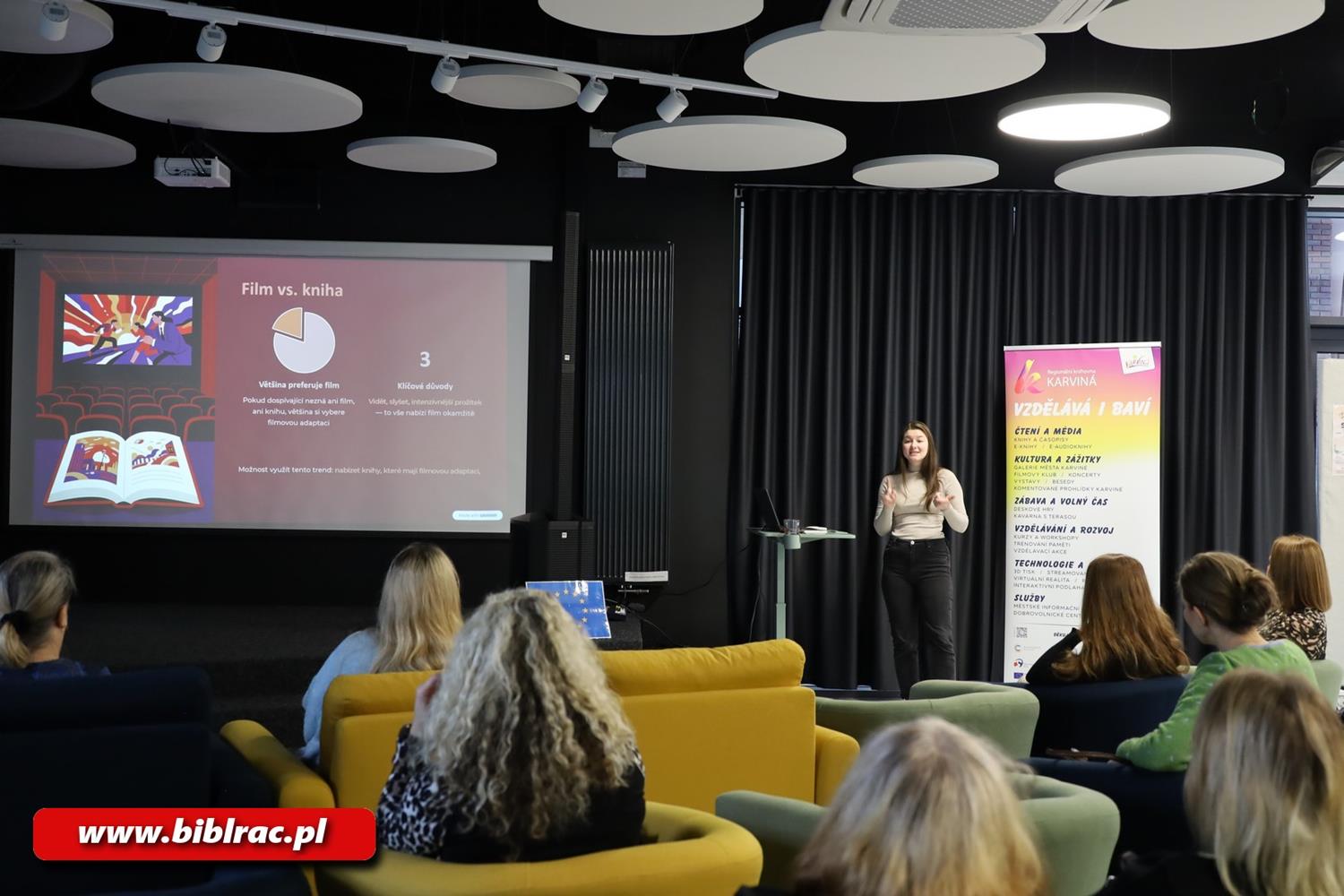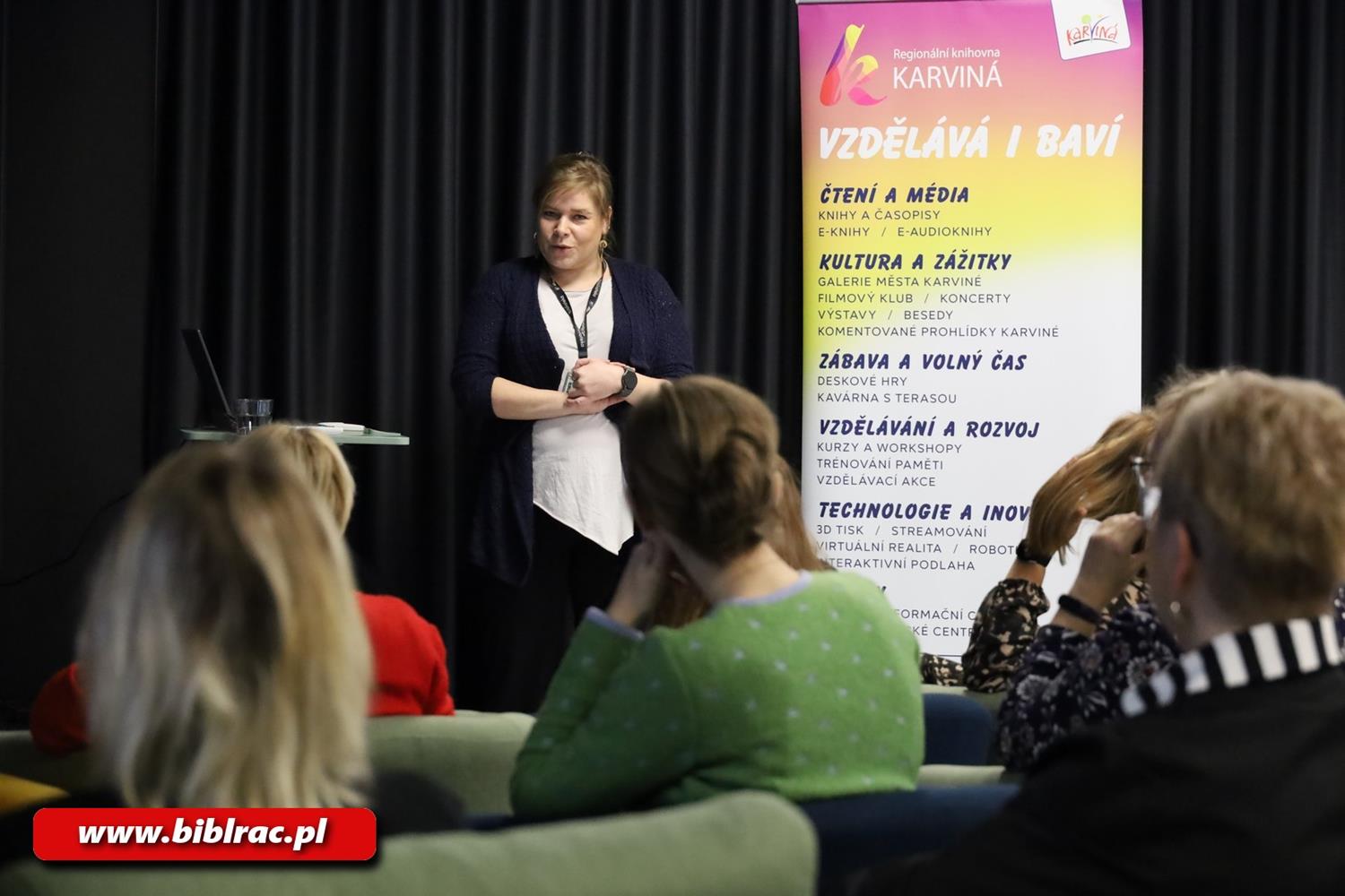 Seminarium zatytułowane „Młodzież 13+ w bibliotece” skupiło się na wymianie doświadczeń związanych z popularyzacją czytelnictwa i tworzeniem atrakcyjnych ofert dla młodych odbiorców. Prelekcje wygłosiły Magdalena Wieder – kierownik Stacji Młodych oraz przedstawicielka biblioteki w Karwinie. Uczestniczki spotkania rozmawiały o trendach czytelniczych, najczęściej wybieranych tytułach i formach aktywizowania młodzieży korzystającej z bibliotek.