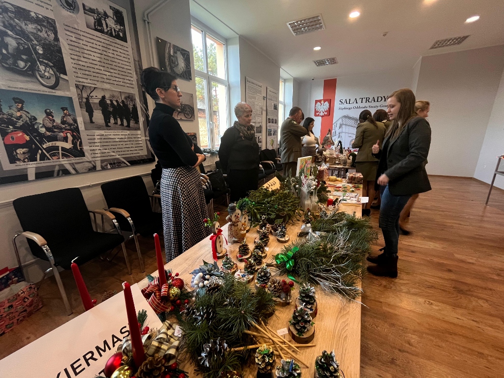W Sali Tradycji zorganizowano także kiermasz świąteczny, podczas którego można było nabyć ręcznie wykonane ozdoby bożonarodzeniowe. Zebrane środki zostaną przeznaczone na leczenie córki jednej z pracownic ŚlOSG. Wydarzenie odbyło się pod patronatem Związków Zawodowych Pracowników oraz Funkcjonariuszy Śląskiego Oddziału SG.