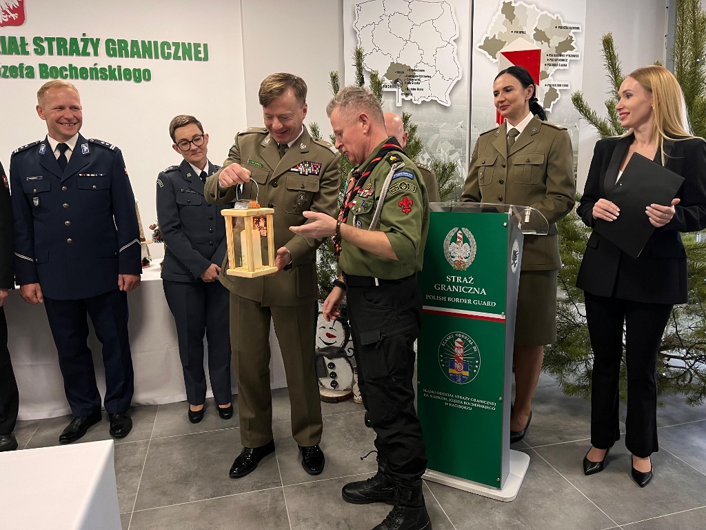 Szczególnie uroczystym momentem spotkania było przekazanie Betlejemskiego Światła Pokoju. Płomień pochodzący z Groty Narodzenia Pańskiego w Betlejem na ręce komendanta ŚlOSG przekazał komendant Hufca ZHP Kuźnia hm. Marek Rybicki. Światło, odebrane wcześniej w wiedeńskim kościele św. Rodziny, jest symbolem pokoju, nadziei, miłości i wiary. Tradycja przekazywania Betlejemskiego Światła Pokoju sięga 1986 r. i dziś jest obecna w ponad trzydziestu krajach, stanowiąc jeden z rozpoznawalnych elementów bożonarodzeniowych zwyczajów.