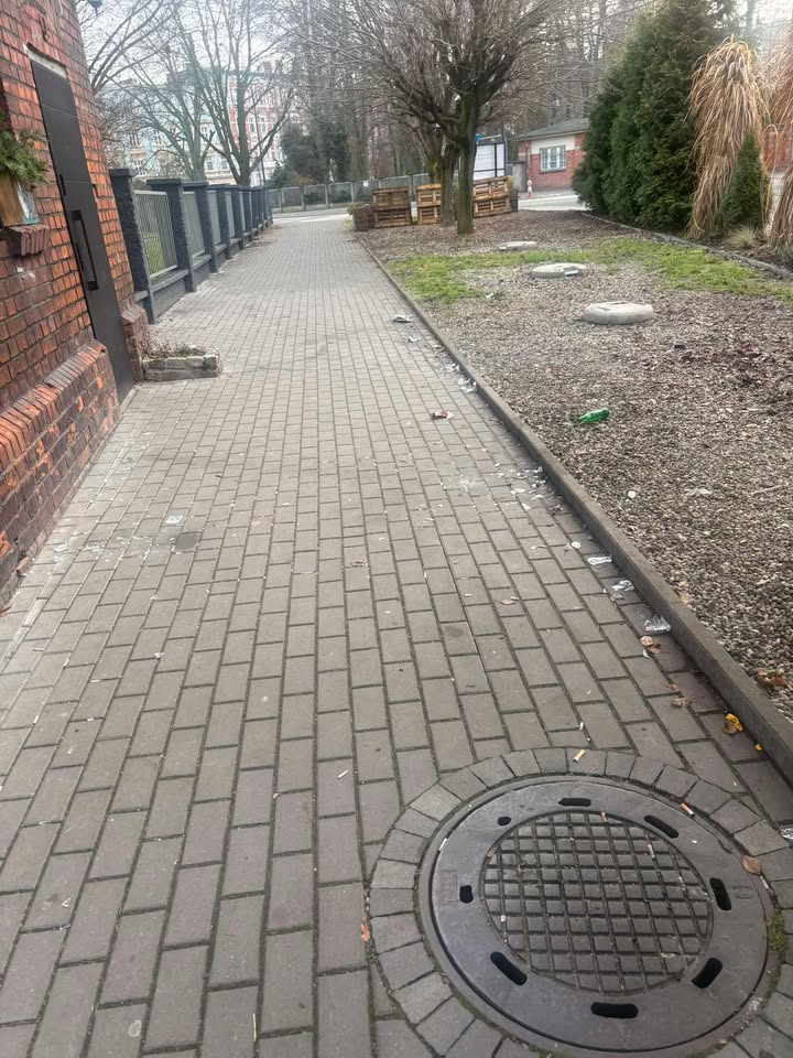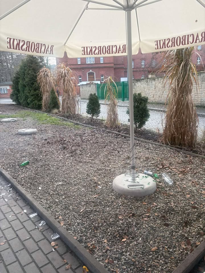 Wysyłam kilka fotek jako mieszkanka Raciborza i sąsiadka pubu Kulturalny Przystanek Koniec Świata na Karola Miarki. Chociaż nie wiem, czy ten klub ma coś wspólnego z kulturą, patrząc na syf pozostawiony przez klientów tego przybytku. Wiele razy było zwracane właścicielce, aby sprzątała po swoich klientach, bo za każdym razem są pozostawione butelki, szklanki, kieliszki, puszki i rozbite szkło wala się po całym placu przed naszą kamienica, ale i nie tylko. Bo nawet te przedmioty są za płotem PZU, przy Parku Jordanowskim i przy Powiatowym Domu Kultury.