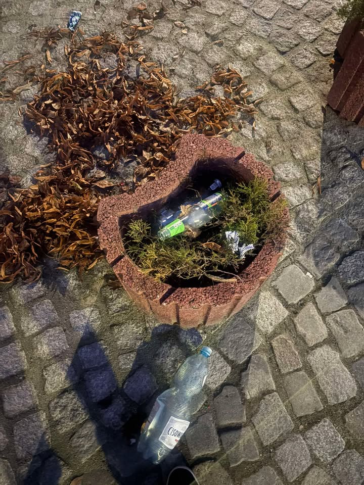 Wy może macie kontakty i wpływ, to zwróćcie tej paniusi uwagę, że ma lokal w miejscu publicznym, więc trochę porządku tu powinno być, wystarczy, że jej klienci piją i imprezują pod naszą kamienica i mamy serdecznie tego dosyć. A tu nie ma parkingu, a stają, gdzie im się podoba. A ostatnio impreza po imprezie, więc szkła jest pełno.