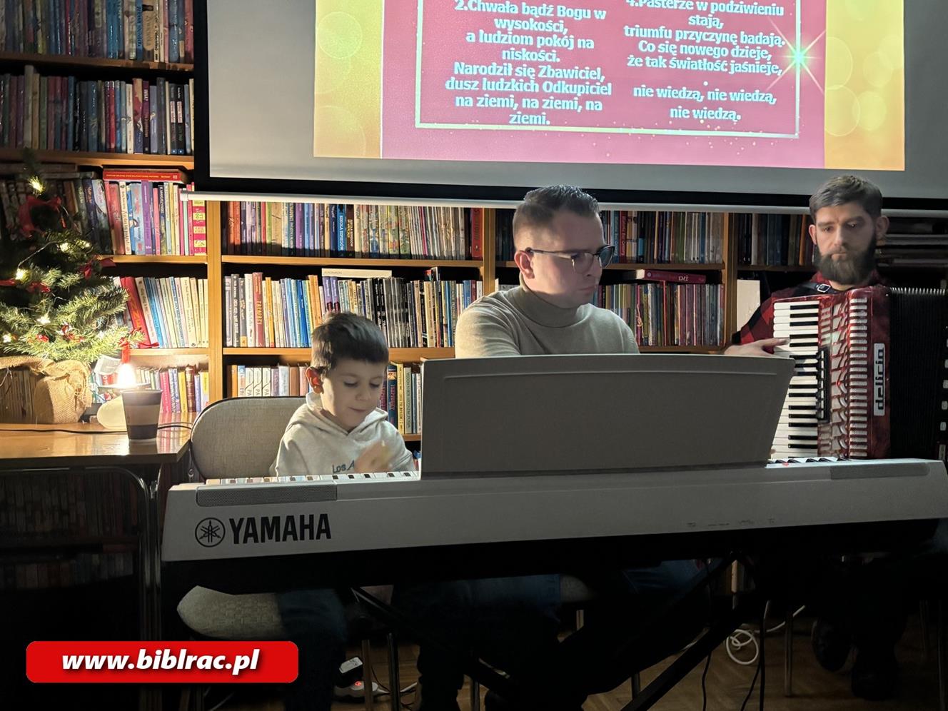 Dzień wcześniej podobne spotkanie odbyło się w bibliotece na Ostrogu, gdzie zorganizowano pierwsze w tym roku spotkanie Klubu Przyjaciół Biblioteki. Wraz z Zamkową Grupą Teatralną uczestnicy czytali świąteczne wiersze autorstwa lokalnej poetki Wigi Wojnowskiej, a także utwory ks. Jana Twardowskiego i Leopolda Staffa. Część literacka wprowadziła zgromadzonych w refleksyjny, świąteczny nastrój i stała się wstępem do wspólnego kolędowania. Spotkanie miało kameralny charakter i było okazją do wspólnego przeżywania literatury i muzyki w atmosferze ciepła i życzliwości.