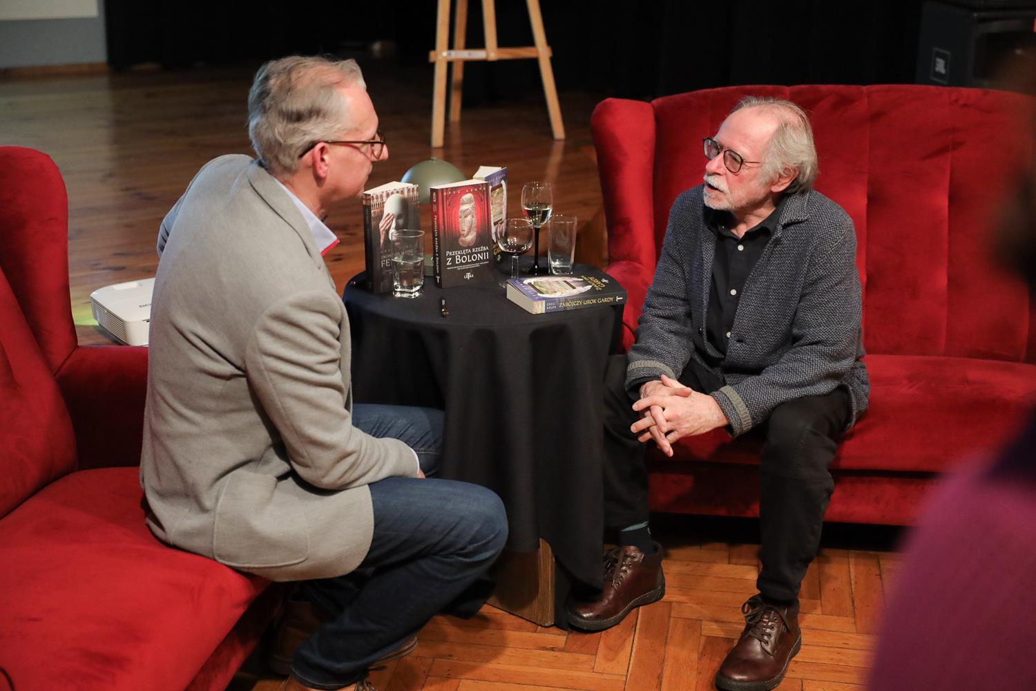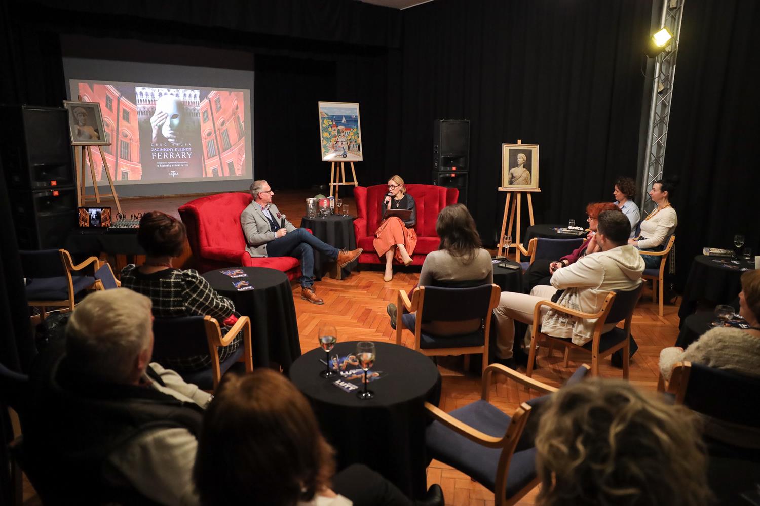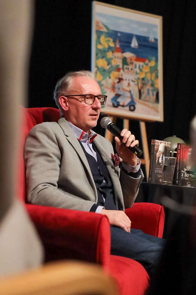 Pisarz opowiadał o swojej twórczości inspirowanej wieloletnim pobytem we Włoszech oraz zainteresowaniem historią i historią sztuki. Dorobek autora obejmuje trylogię powieściową, w której każda część osadzona jest w innym włoskim mieście. Spotkanie podzielono na trzy segmenty odpowiadające kolejnym książkom, a wprowadzeniem do każdego z nich były krótkie prezentacje filmowe przybliżające charakter opisywanych miejsc. Wszystkie tomy łączy postać dziennikarza śledczego o polskich korzeniach – Davida Dobravskiego.
