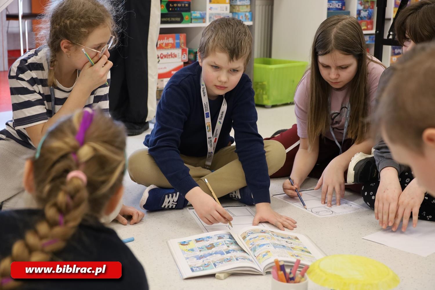 Za uczestnikami akcji „Komiksowe Ferie z Biblioteką” pierwszy tydzień zimowych zajęć. Upłynął on w atmosferze dobrej zabawy, twórczej energii i zdobywania nowych umiejętności. Program przygotowany przez bibliotekę połączył świat literatury i komiksu z aktywnościami plastycznymi oraz ruchowymi, zachęcając dzieci do kreatywnego spędzania wolnego czasu.