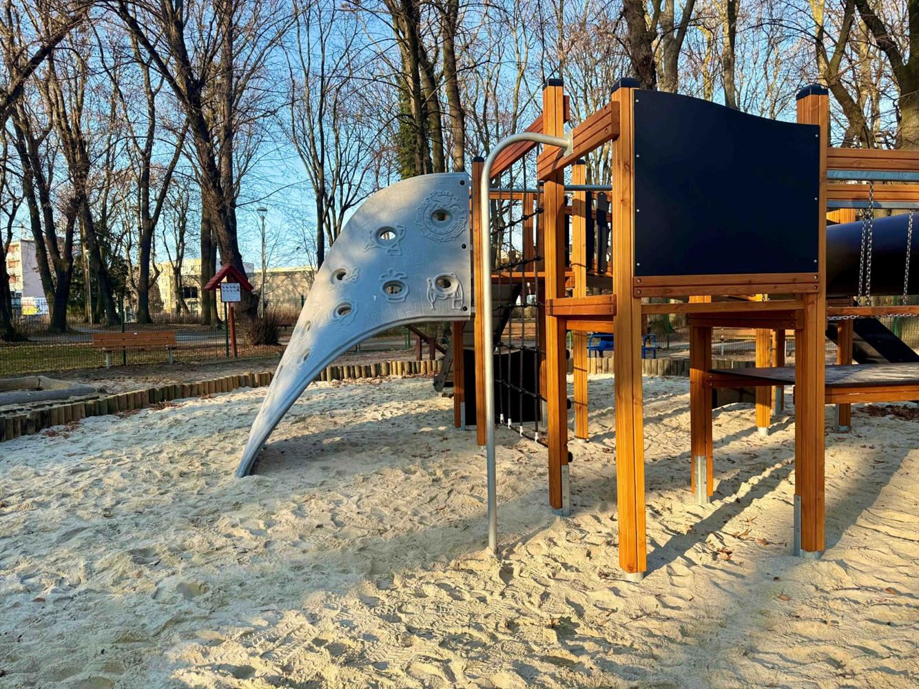 W ramach inwestycji zamontowano wielofunkcyjny zestaw zabawowy przeznaczony dla dzieci powyżej trzeciego roku życia. Nowa konstrukcja oferuje różnorodne formy aktywności umożliwiające zabawę na wielu poziomach. Na placu pojawiły się m.in. zjeżdżalnie o różnej wysokości, elementy wspinaczkowe, tunele, pomosty i wieżyczka z daszkiem. Urządzenia zaprojektowano tak, aby wspierały rozwój ruchowy dzieci, zachęcały do aktywności fizycznej i sprzyjały wspólnej zabawie.
