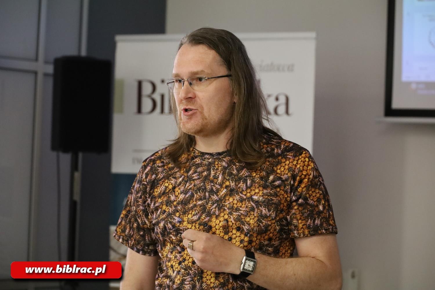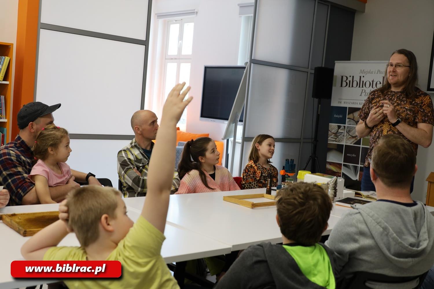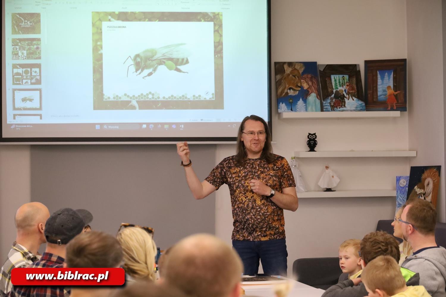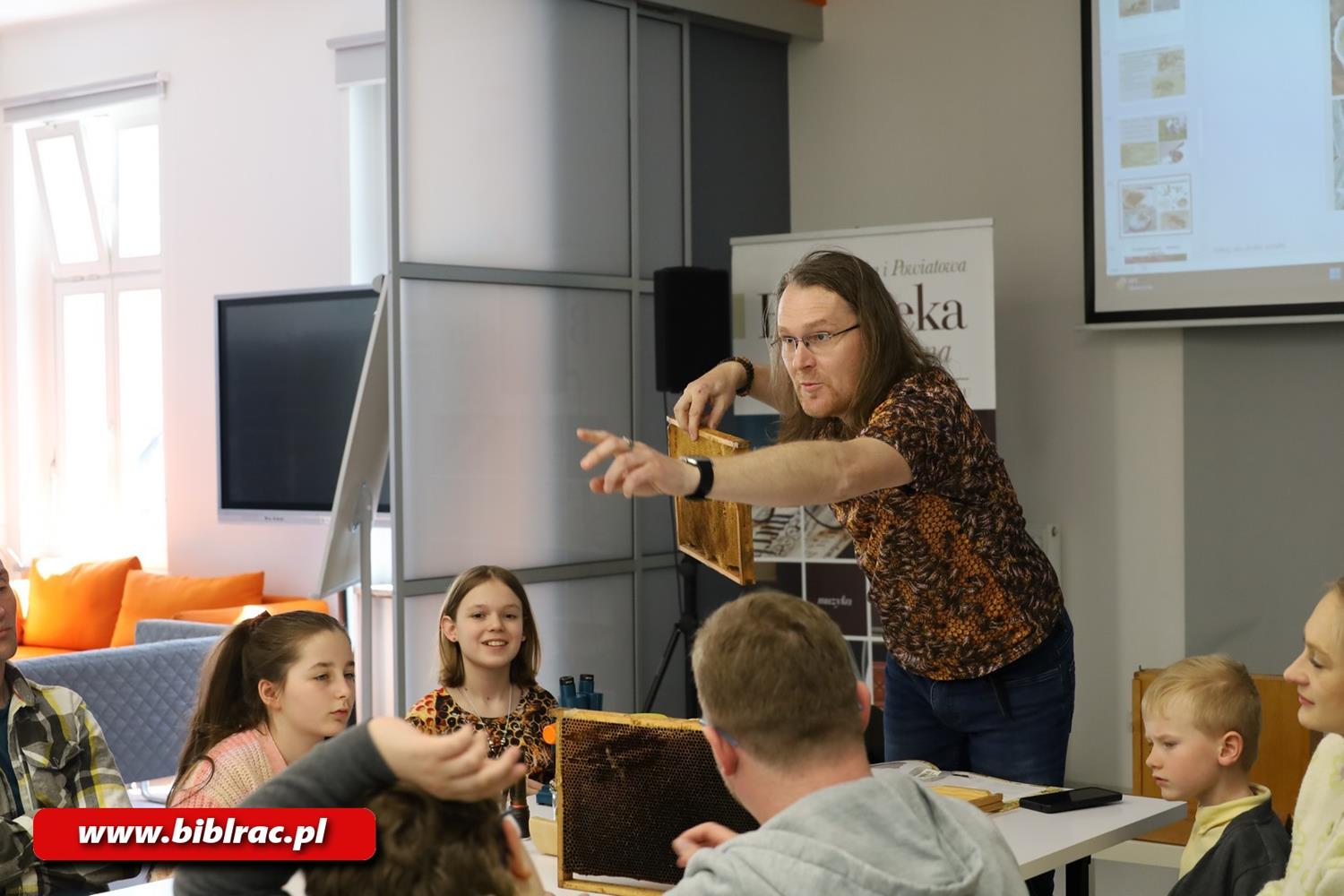 Kwietniowe spotkanie Klubu Ojca w Miejskiej i Powiatowej Bibliotece Publicznej w Raciborzu poświęcone było światu pszczół. Gościem wydarzenia był Sebastian Meller – absolwent pszczelarstwa na Wydziale Biotechnologii i Hodowli Zwierząt Uniwersytetu Rolniczego w Krakowie, który w przystępny sposób opowiedział uczestnikom o życiu tych owadów i pracy w pasiece. W prowadzeniu spotkania pszczelarzowi pomagała jego córka Jagoda, która również dzieliła się swoją wiedzą o pszczołach.