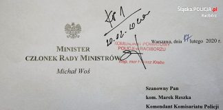 Minister Michał Woś pogratulował policjantom z Kuźni Raciborskiej