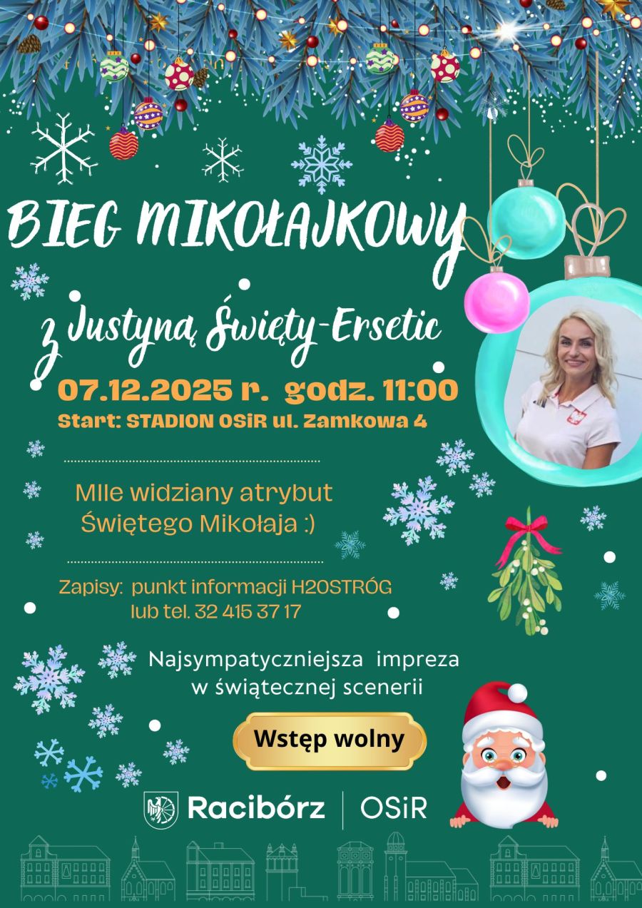 7 grudnia na stadionie OSiR w Raciborzu odbędzie się kolejna edycja biegu mikołajkowego. Start wydarzenia zaplanowano na godz. 11:00. Wydarzenie ma charakter rekreacyjny i jest skierowane zarówno do dzieci, jak i do dorosłych, którzy chcą połączyć aktywność fizyczną ze świąteczną atmosferą. Organizatorzy zachęcają uczestników do założenia elementów kojarzących się z Mikołajem, takich jak czapki, stroje czy inne świąteczne akcenty.
