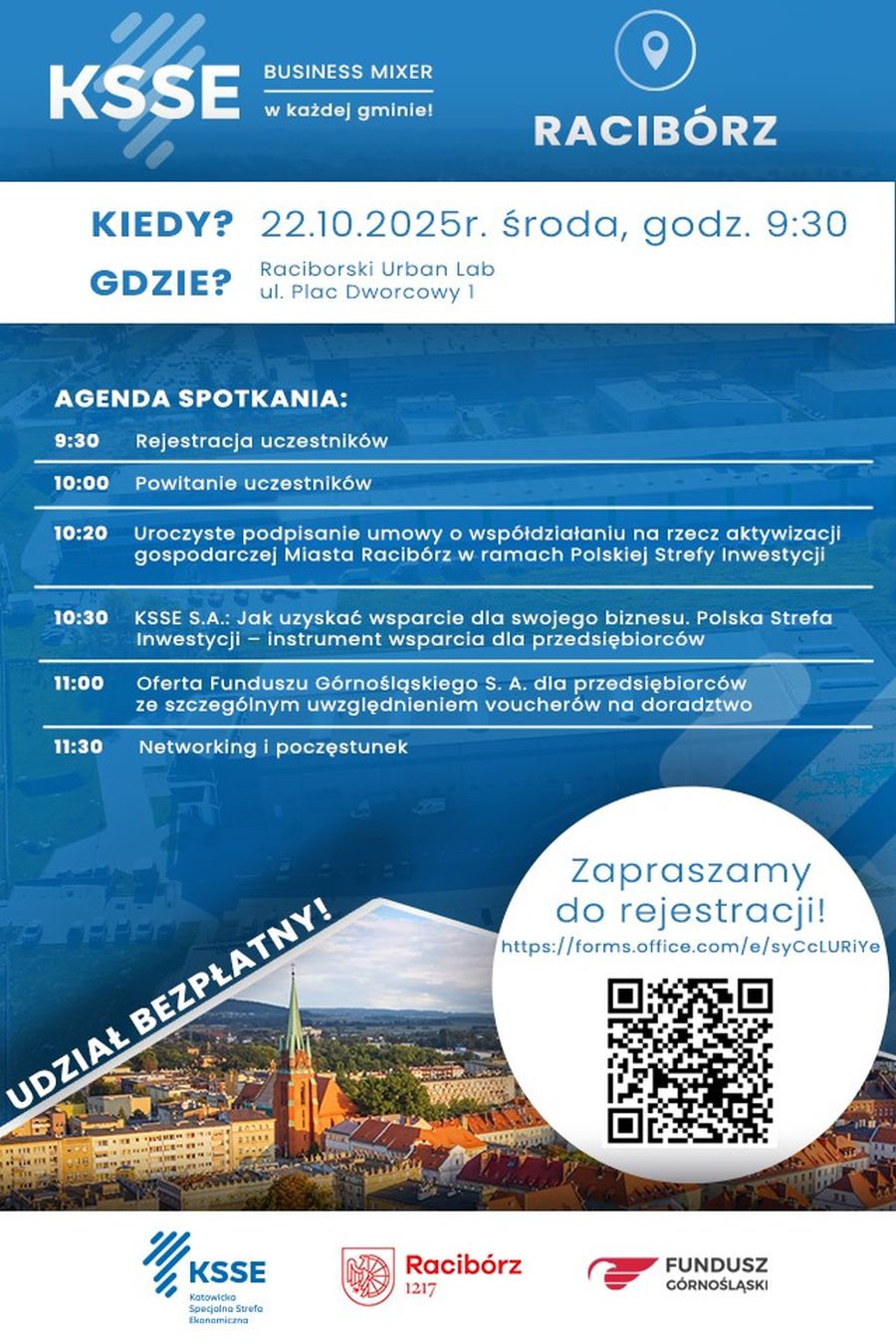 Uczestnicy wysłuchają prezentacji ekspertów KSSE, którzy przedstawią zasady uzyskiwania wsparcia dla biznesu w ramach Polskiej Strefy Inwestycji – instrumentu oferującego przedsiębiorcom m.in. zwolnienia podatkowe i preferencje inwestycyjne. Fundusz Górnośląski S.A. zaprezentuje natomiast aktualną ofertę programów pomocowych, w tym vouchery na doradztwo dla mikro, małych i średnich firm. Spotkanie zakończy się networkingiem i poczęstunkiem, dając uczestnikom możliwość wymiany doświadczeń i nawiązania nowych kontaktów biznesowych.