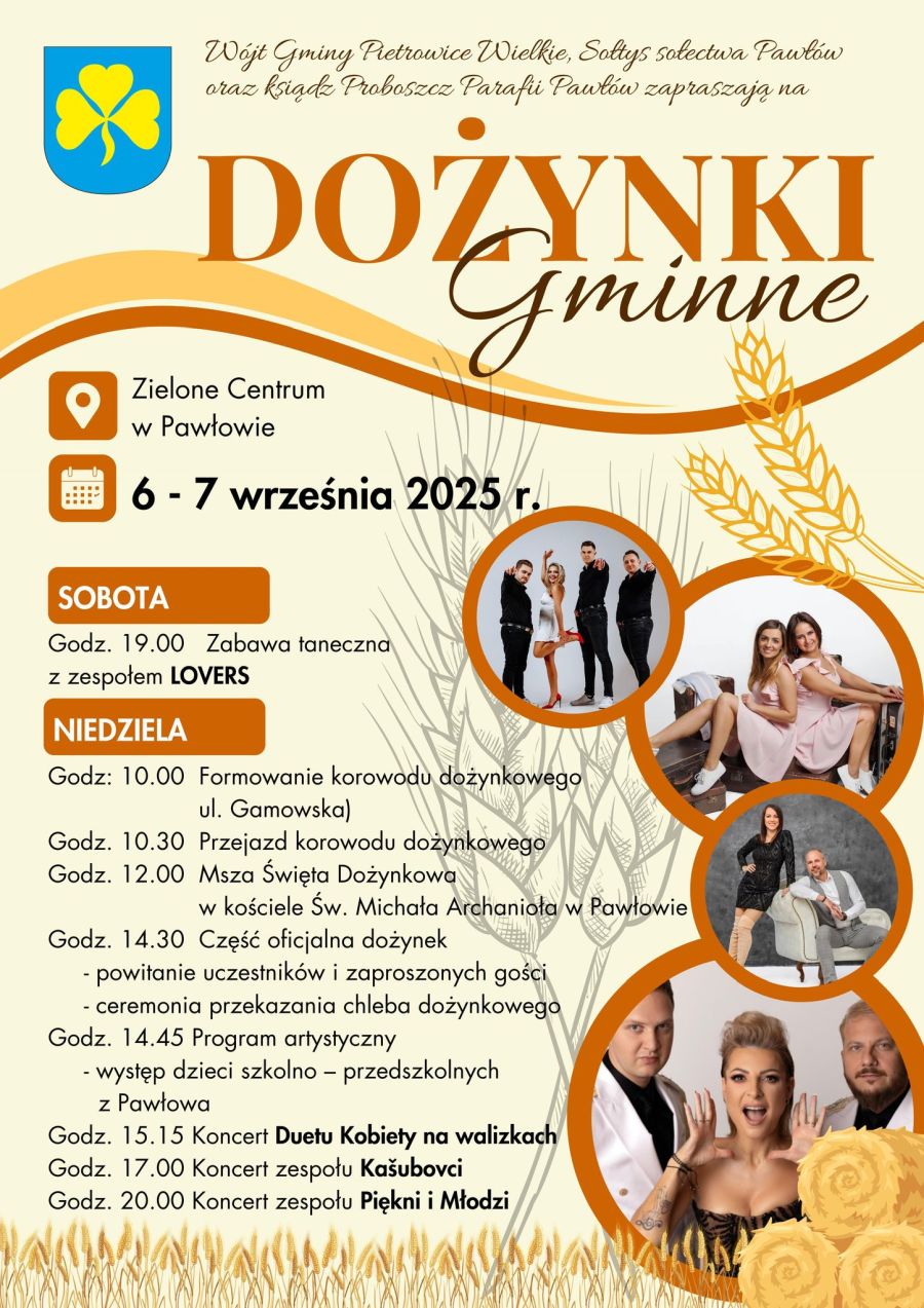 Święto plonów w Pawłowie zapowiada się jako barwne wydarzenie łączące tradycję z muzyczną rozrywką, a także okazja do wspólnego świętowania dla mieszkańców całej gminy Pietrowice Wielkie i okolic.