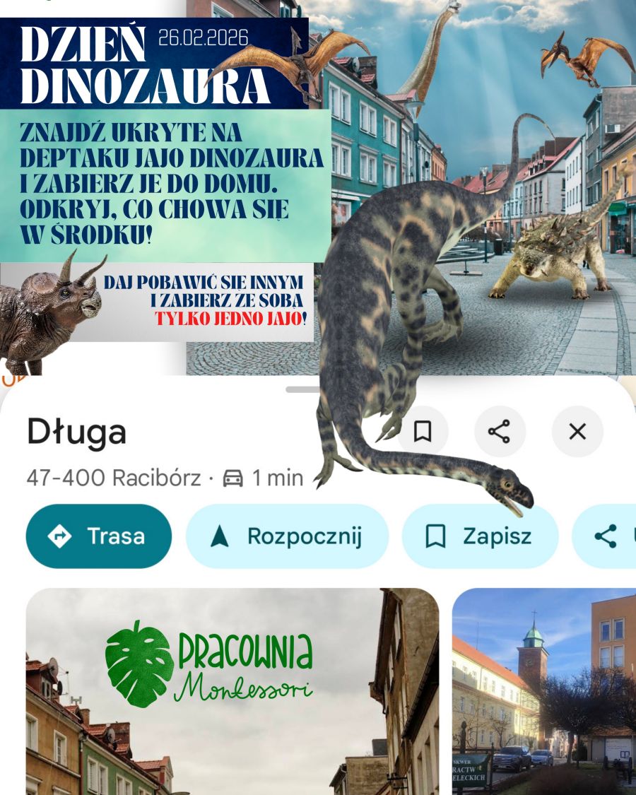 W czwartek 26 lutego ul. Długa w Raciborzu zamieni się w miejsce pełne dinozaurów i dobrej zabawy. Od godz. 10:00 dzieci z Pracowni Montessori zapraszają resztę najmłodszych mieszkańców miasta na akcję z okazji Dnia Dinozaura.