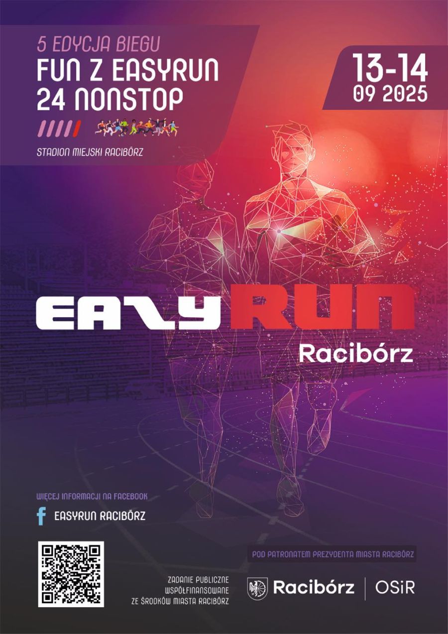 W dniach 13–14 września na Stadionie Miejskim w Raciborzu odbędzie się 5. edycja biegu „Fun z EasyRun 24h Nonstop”. Wydarzenie skierowane jest do wszystkich miłośników aktywnego trybu życia – zarówno biegaczy, jak i entuzjastów nordic walking.