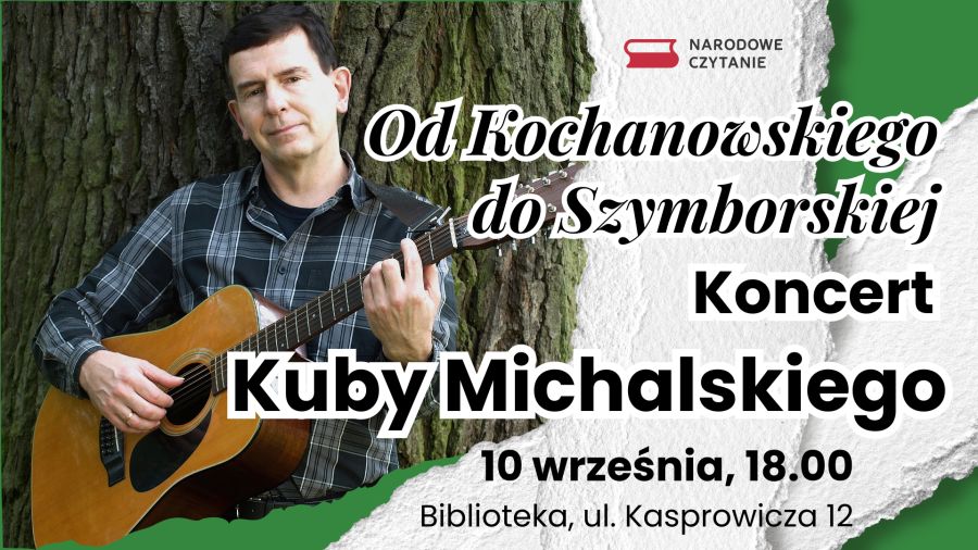 Miejska i Powiatowa Biblioteka Publiczna w Raciborzu zaprasza 10 września na wydarzenie w ramach Narodowego Czytania – o godz. 18:00 w siedzibie przy ul. Kasprowicza 12 odbędzie się koncert Kuby Michalskiego zatytułowany „Od Kochanowskiego do Szymborskiej”. Wstęp wolny.