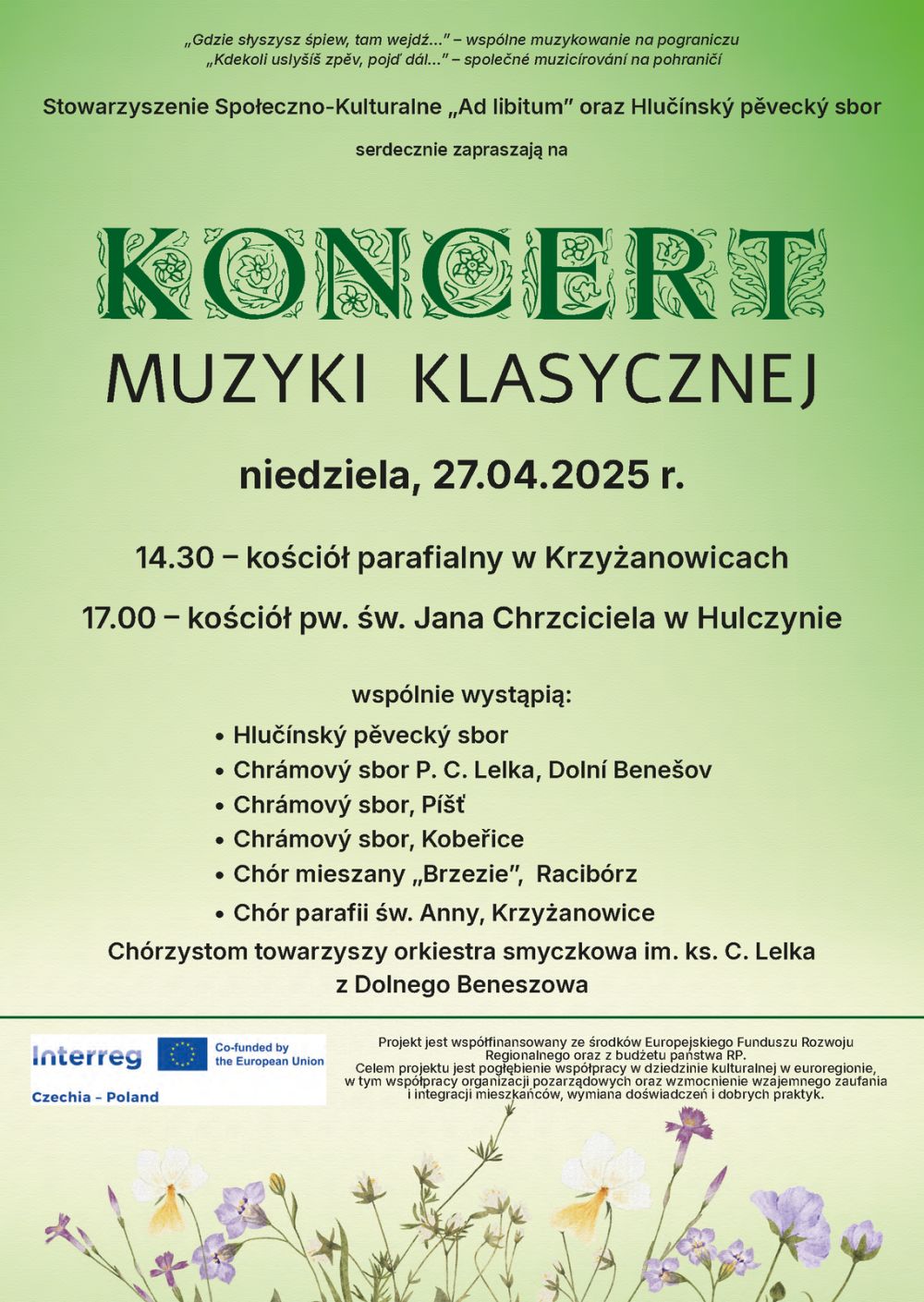 Na wydarzenie zapraszają Stowarzyszenie Społeczno-Kulturalne Ad libitum z Krzyżanowic oraz Hlučínský pěvecký sbor z Hulczyna.
