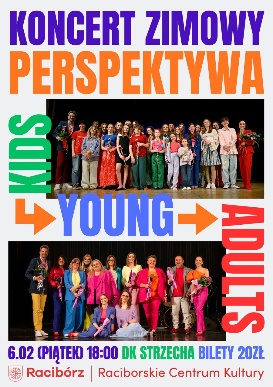 6 lutego o godz. 16:00 w Domu Kultury Strzecha w Raciborzu odbędzie się koncert zimowy zespołu Perspektywa. Na scenie zaprezentują się trzy grupy zespołu: Kids, Young i Adults. Wokalistki i wokaliści wykonają znane i lubiane utwory o tematyce zimowej i świątecznej, przygotowane w specjalnych aranżacjach. Program koncertu obejmie zarówno polskie, jak i zagraniczne kompozycje.