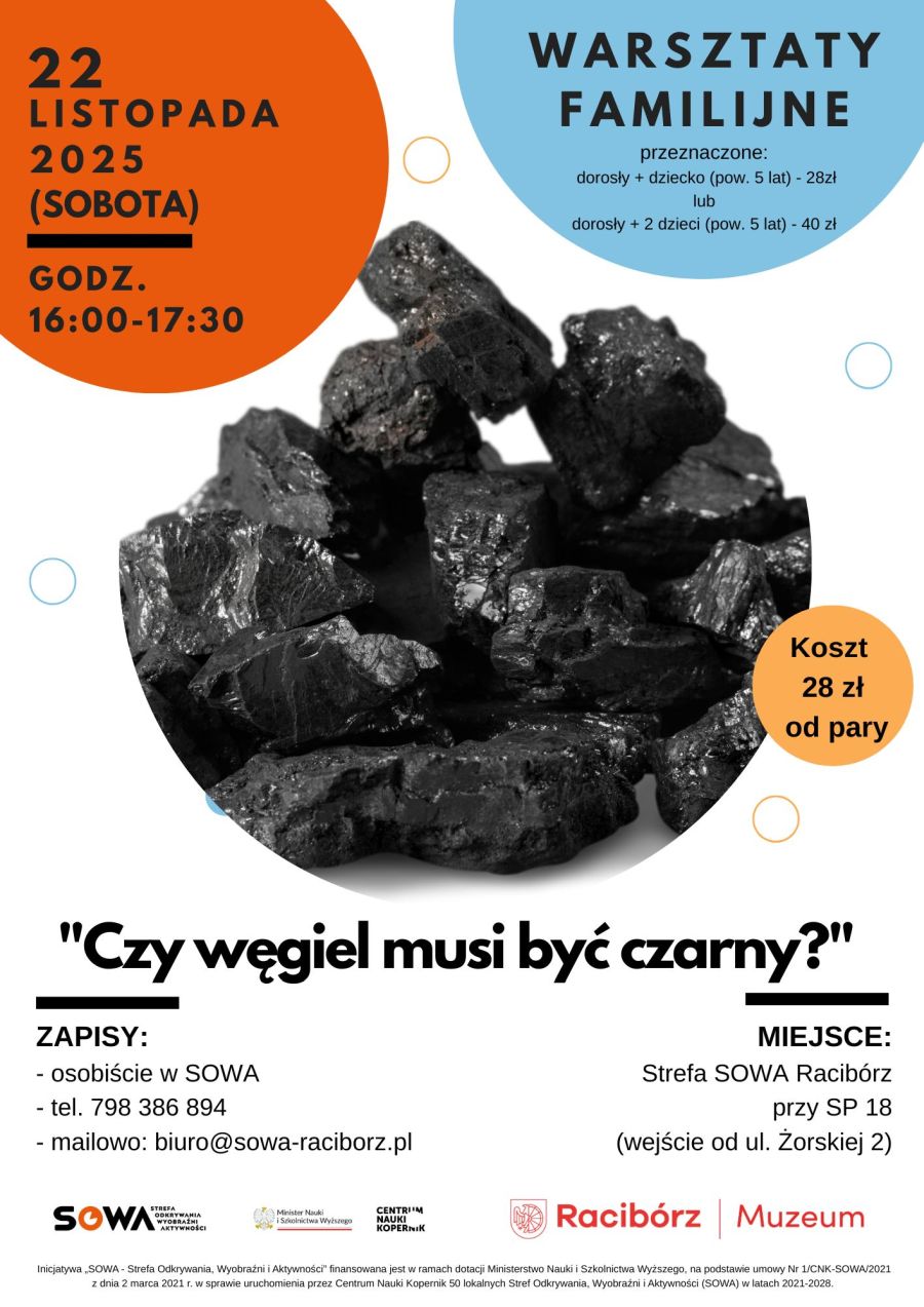 Warsztaty familijne „Czy węgiel musi być czarny?” w Strefie Odkrywania, Wyobraźni i Aktywności SOWA w Raciborzu 22 listopada